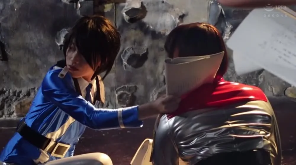 Watch Asian women in colorful costumes posing, touching, and interacting in a locker room and destroyed area. Dramatic lighting and varied camera angles.