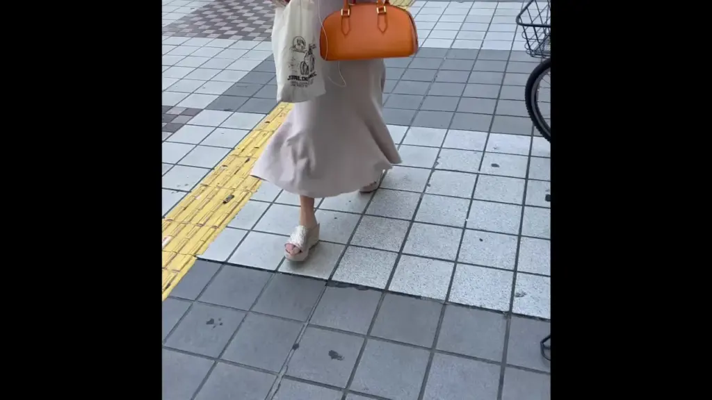 Watch Asian women walking on the street, captured in high angle medium shots, showcasing their slim athletic bodies and long straight hair.