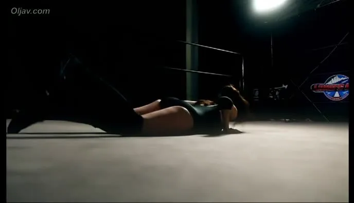 Watch two Asian women engage in intense wrestling match in a dimly lit ring, with dramatic camera angles and close-ups.