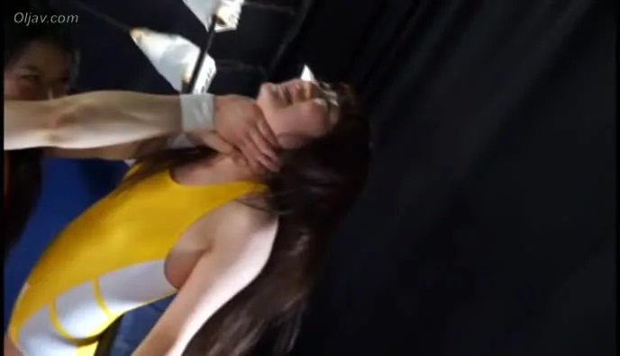 Watch two Asian women engage in a sensual wrestling match, clad in wrestling attire, in an indoor wrestling ring with intense grappling and body contact.