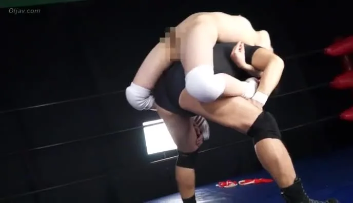Watch intense wrestling match with Asian performers in revealing attire, culminating in nude scenes on a blue mat wrestling ring.