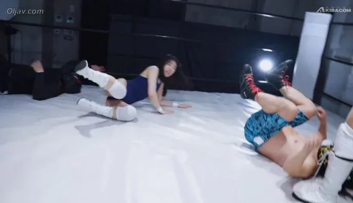 Watch intense wrestling match between Asian male and female wrestlers, with explicit poses and intense action in the ring.