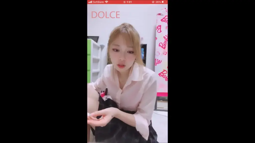 Watch a stunning blonde Asian woman pose in a clothing store or dressing room with makeup and lingerie