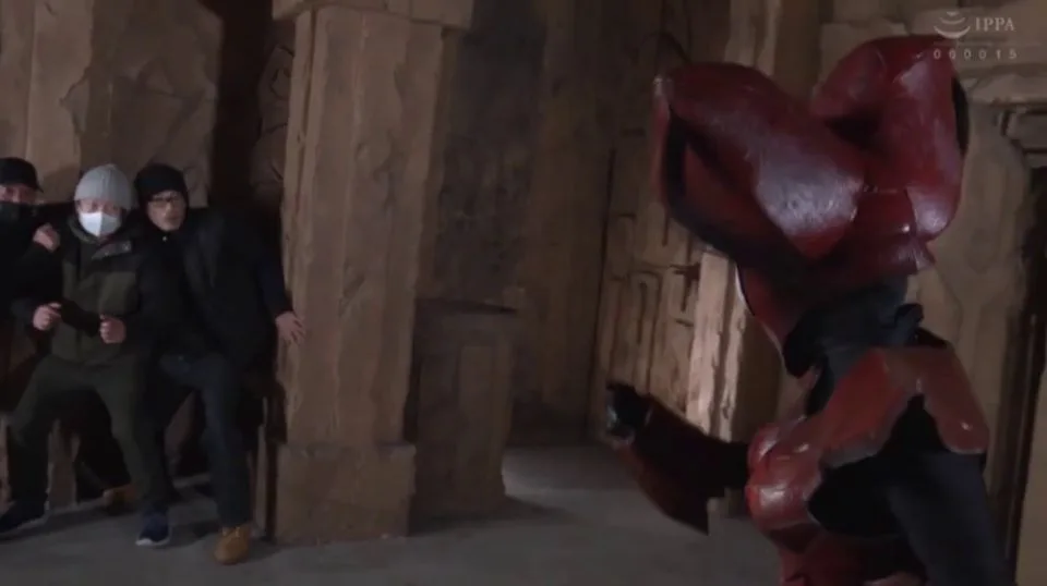 Witness intense encounters between blonde Asian women and muscular men in ancient temple settings, adorned in armor and caught in restrained poses