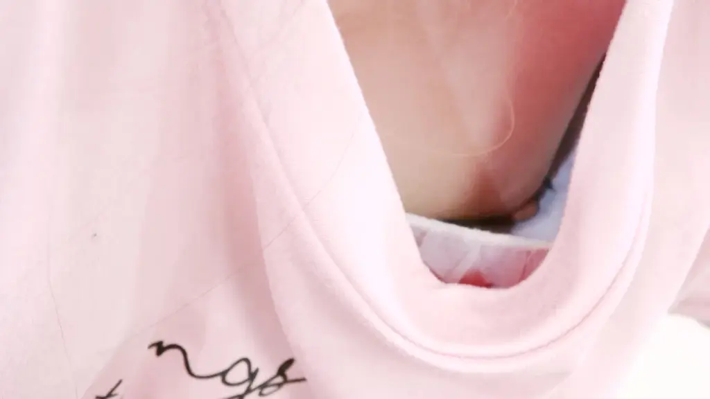 Watch a blonde Asian woman in her 20s expose her cleavage in a seductive close-up, wearing a pink shirt.