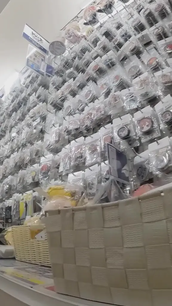 Watch a blonde Asian woman in her 20s, wearing black boots and hat, in a store setting with shelves and packaged goods.