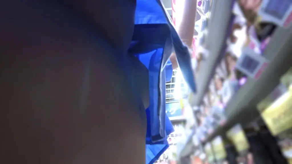 Watch a stunning blonde with large breasts as she shops and exposes herself in a store