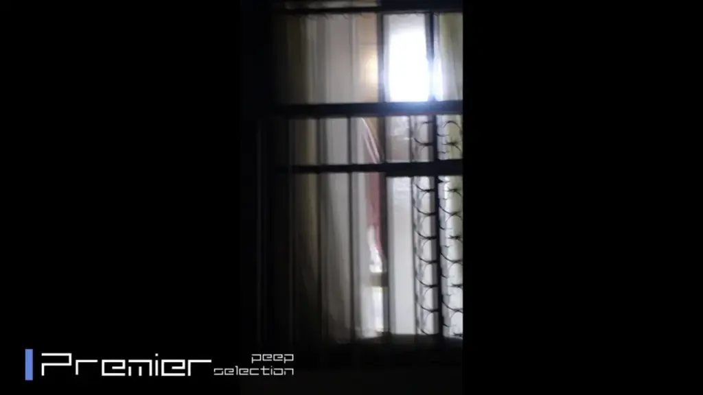 Watch a young blonde woman standing near the window in a bedroom with natural light.