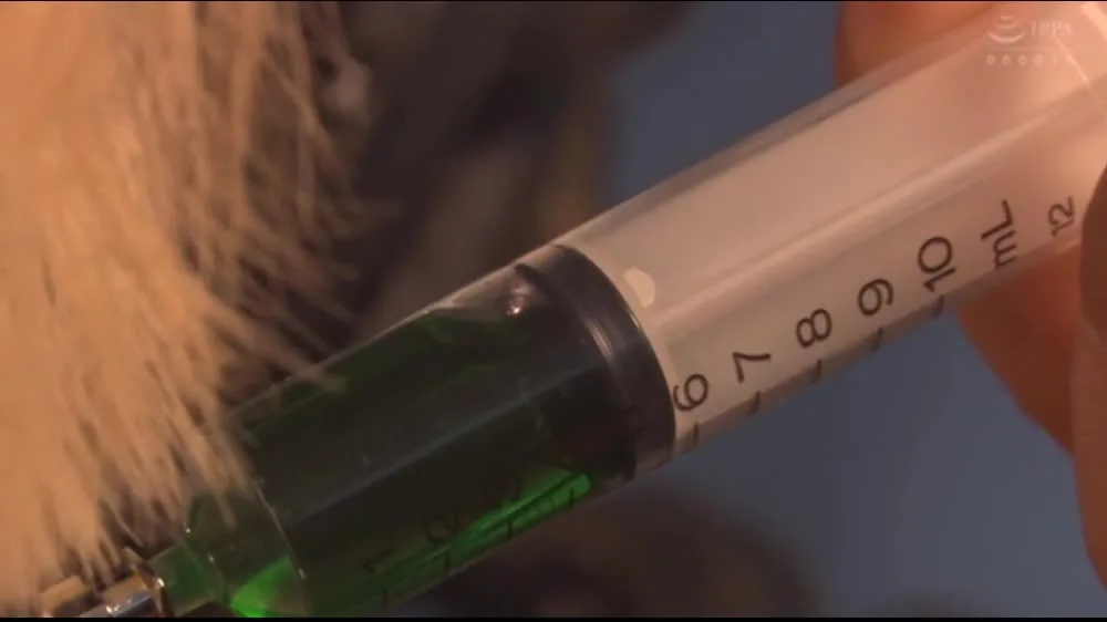 Watch three blonde women in white bodysuits and red capes being restrained and injected with green liquid in a dimly lit setting