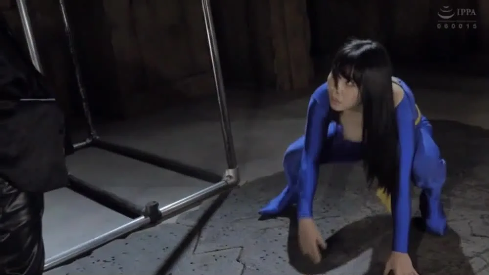 Watch a brunette in a blue bodysuit being restrained and dominated in a metal-structured setting