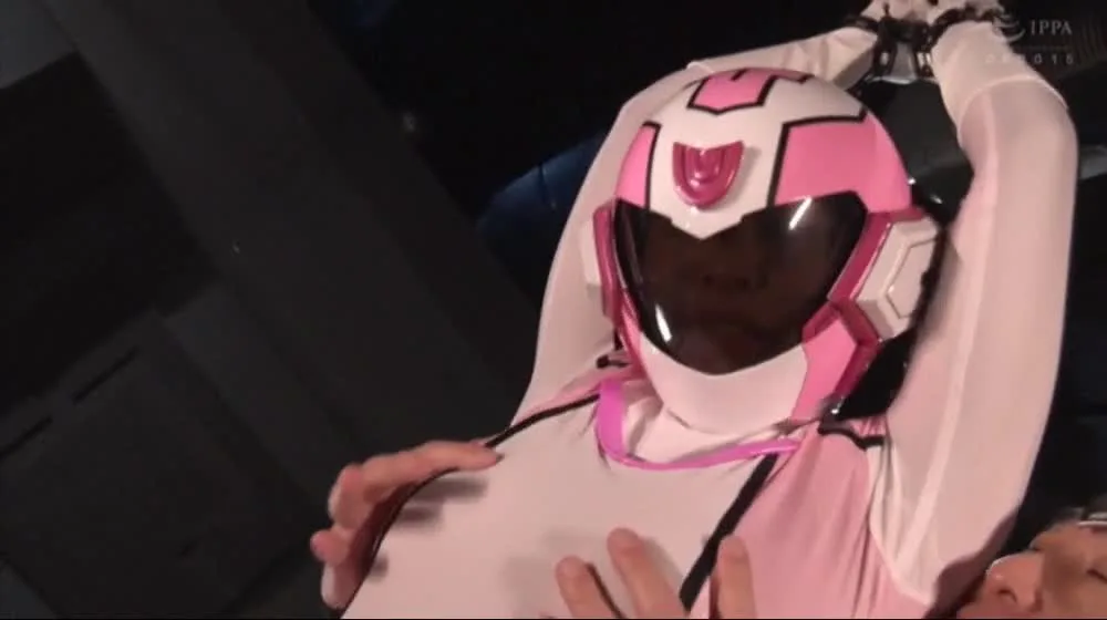 Watch as a female performer is restrained and manipulated by a male in a provocative scene surrounded by pink smoke.