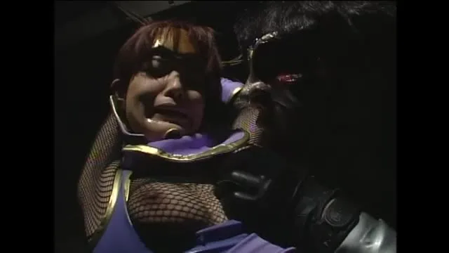 Experience the thrill of a performer restrained and showcased under dim lighting, in a provocative purple costume.