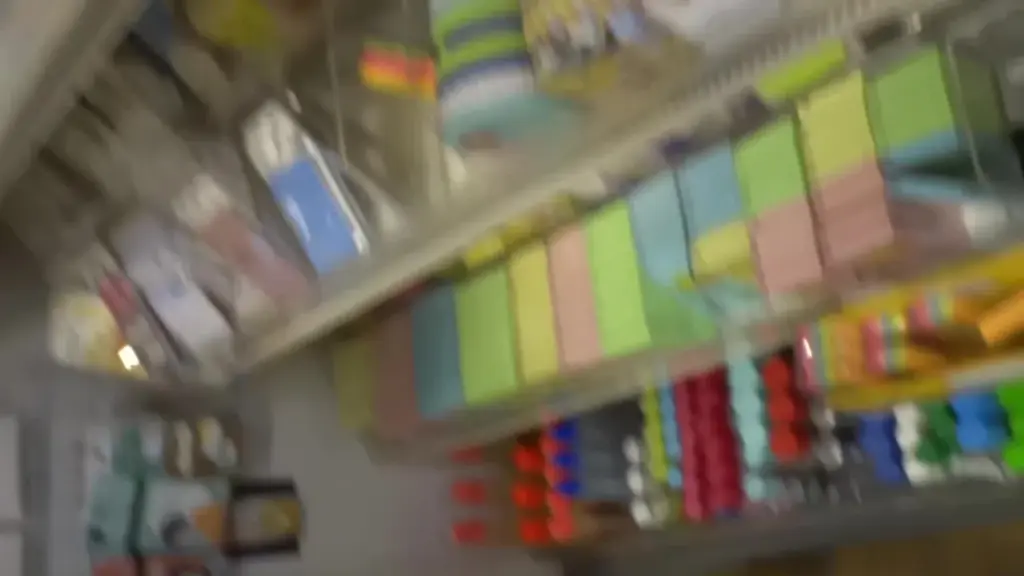 Watch a brown-haired woman in her 20s or 30s shopping in a store, bending and reaching for items on shelves.