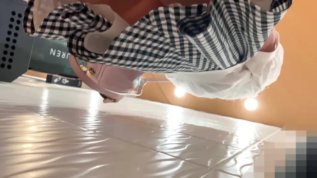 Watch an Asian woman in her 20s lift her skirt and sit with legs spread...