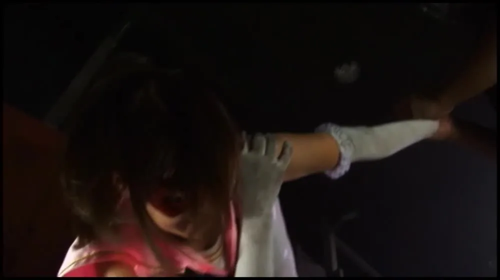 Watch as a dark haired girl in a pink dress is dragged and manhandled by a muscular man in a dimly lit industrial setting