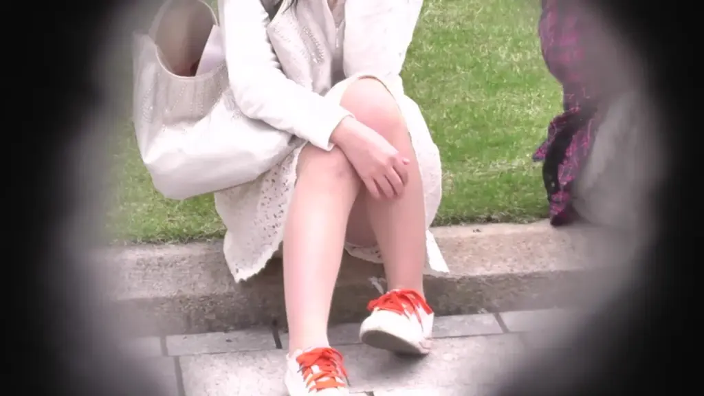 Watch an Asian woman in her 20s lift her skirt and sit with legs spread...