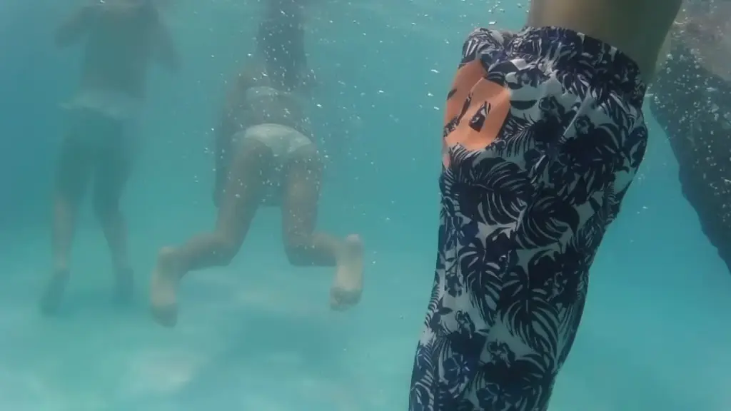 Watch beautiful girls in swimsuits dancing underwater in a pool, captured in various camera angles and shots