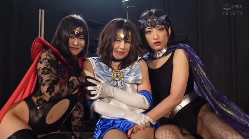 Witness a playful and suggestive group pose unfold into an intimate encounter, captured in medium shots from various angles.