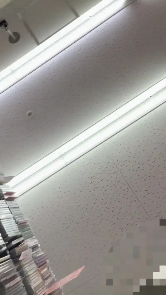 Get teased by a provocative performance in a music store setting with J-POP CDs and a sexy bending pose