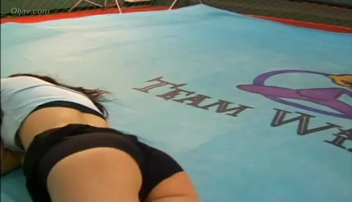 Watch two Caucasian women in their 20s engage in a fierce wrestling match in a ring, wearing fishnet stockings and knee pads.