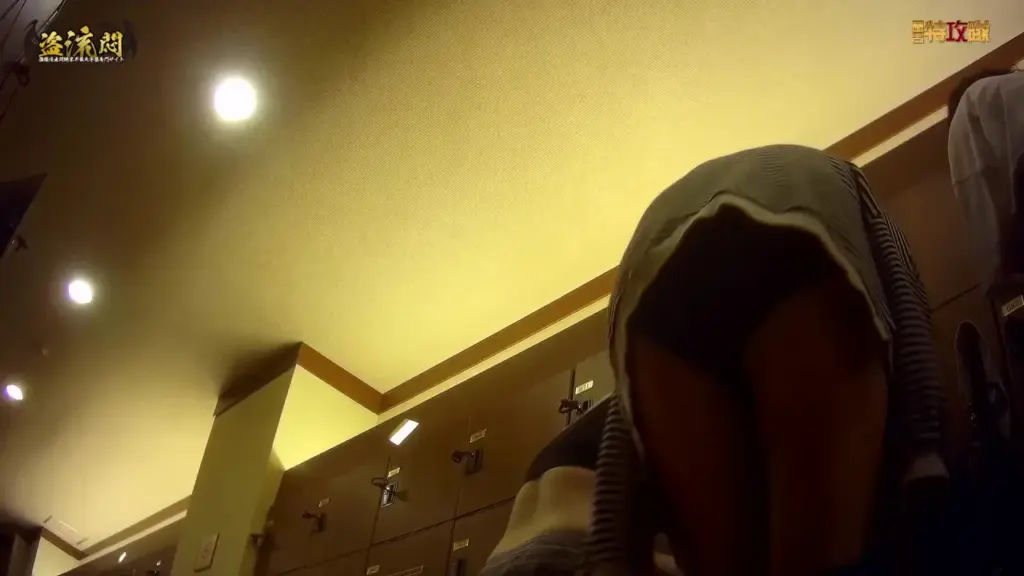 Witness an intimate moment in a locker room with multiple individuals, captured from a unique perspective.