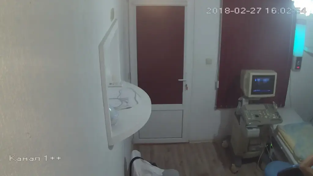 Watch a young woman undress in a medical setting, featuring artificial lighting and medical equipment.