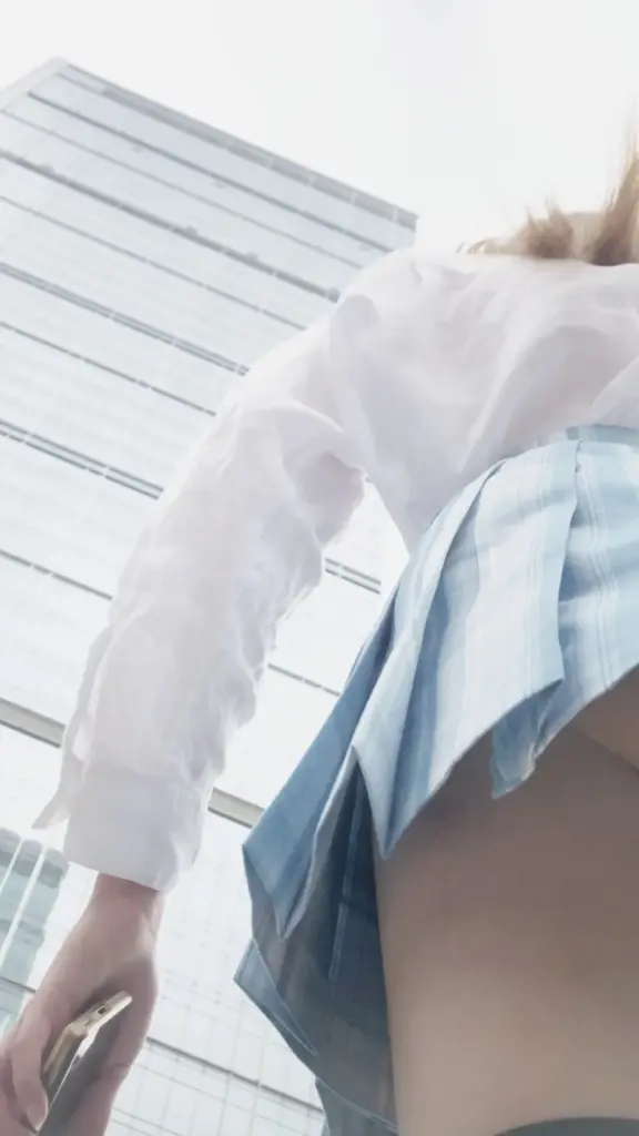 Watch an Asian woman in her 20s lift her skirt and sit with legs spread...