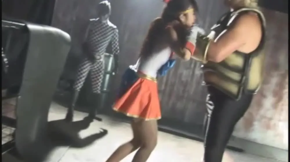 Watch as a cosplayer dressed as Sailor Venus engages in a intense fight scene with another woman, featuring costumes, domination, and more.