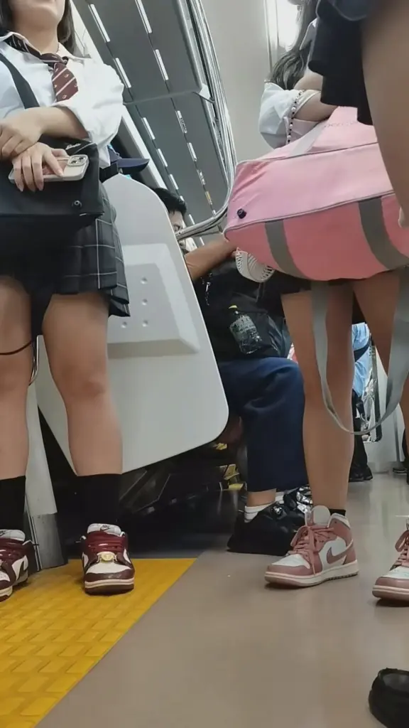 Watch Asian teens in school uniforms getting intimate on crowded public transportation, captured in close-up and POV shots