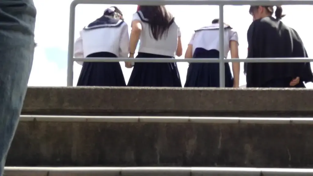 Watch Asian teens in school uniforms captured on store surveillance cameras, engaging in playful and...