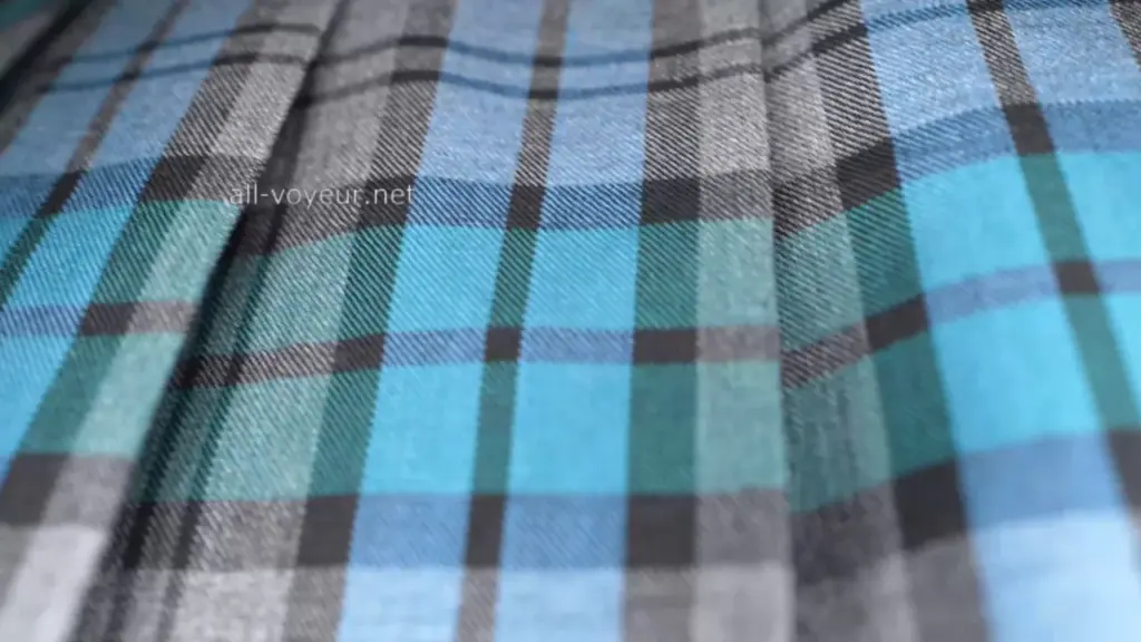 Intimate close-ups of a slim Caucasian woman in lace underwear, showcasing her freckled skin in a bedroom setting with plaid fabric.