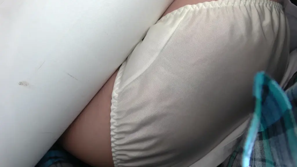 Watch a slim Caucasian woman in her 20s posing on a bed wearing white underwear and a plaid shirt in this intimate bedroom scene.