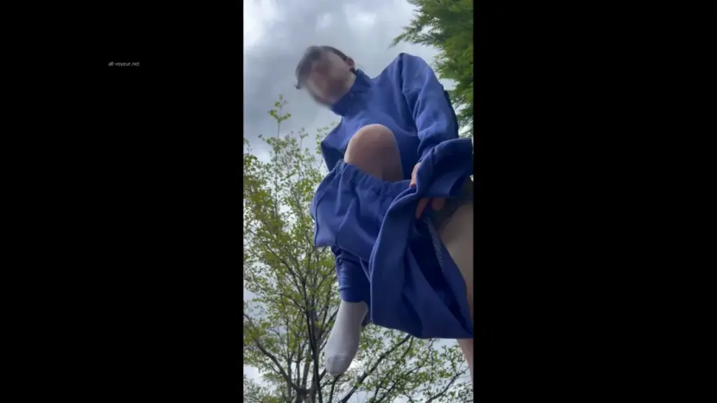 Watch an Asian woman in her 20s lift her skirt and sit with legs spread...