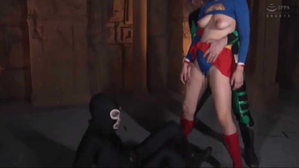 Watch two young lovers in superhero costumes engage in intimate acts in a dark, stone-walled setting