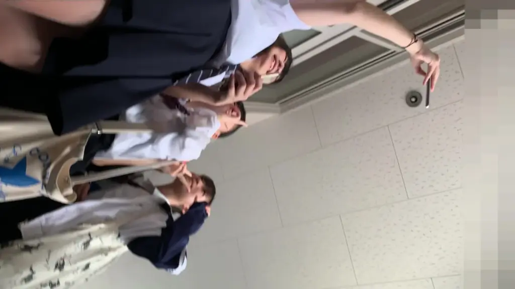 Watch Asian teens in school uniforms captured on store surveillance cameras, engaging in playful and...