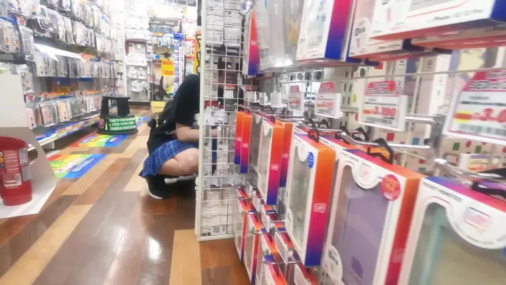 Watch Asian teens in school uniforms captured on store surveillance cameras, engaging in playful and...
