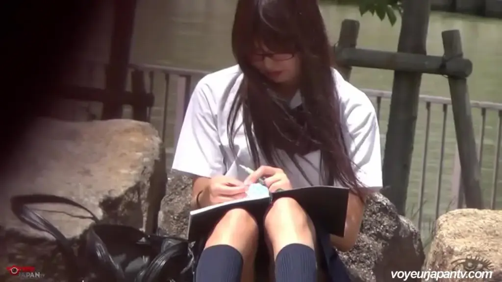 Watch an Asian woman in her 20s lift her skirt and sit with legs spread...
