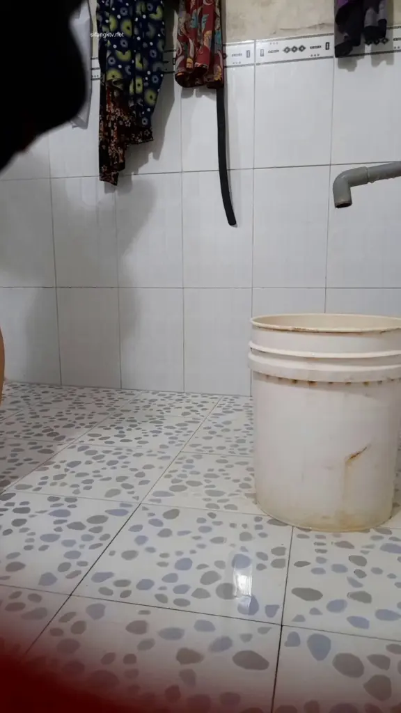 Watch an Asian woman washing her face in the shower, showcasing her squatting and intimate moments.