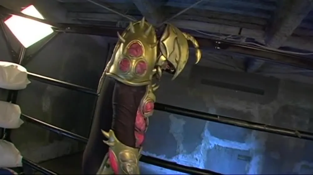 Experience intense wrestling action with a dramatic gun pose and close-up confrontation between performers