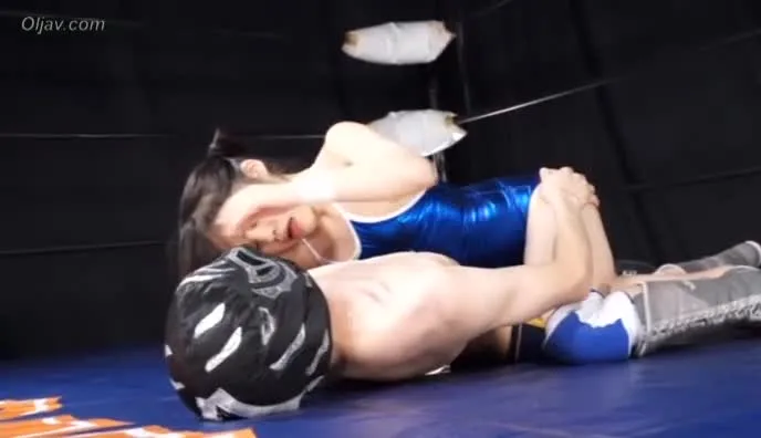 Watch intense wrestling match between Asian man and woman in a low-key arena with close-up shots and wide angles.