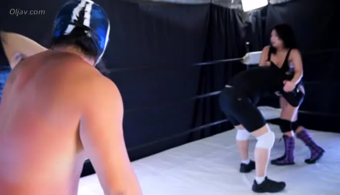 Watch a steamy wrestling match featuring Asian performers in a ring, with restraints and intense action.